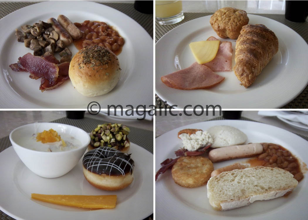 The next morning we went down for Breakfast to Saptami again. (Our package was inclusive of breakfast). Now I wish I had got a few photos of the breakfast buffet because it was absolutely mind blowing. There was so much of variety. First the meat: There were Sausages (Chicken & Pork), Bacon, Turkey Ham. Lots of different Cereals & Mueslis (Check out the bowl in the bottom lefy photo- that’s flavored muesli). Loads of different cheeses & breads. Baked beans, hash browns & sautéed mushrooms. Four or five different donuts. Chocolate Croissants (pictured in the upper right photo) & four or five different cupcakes and muffins. Oh & did I mention Saptami has a completely open kitchen? You can go to the kitchen to get fresh pancakes or get you eggs done exactly like you want them.