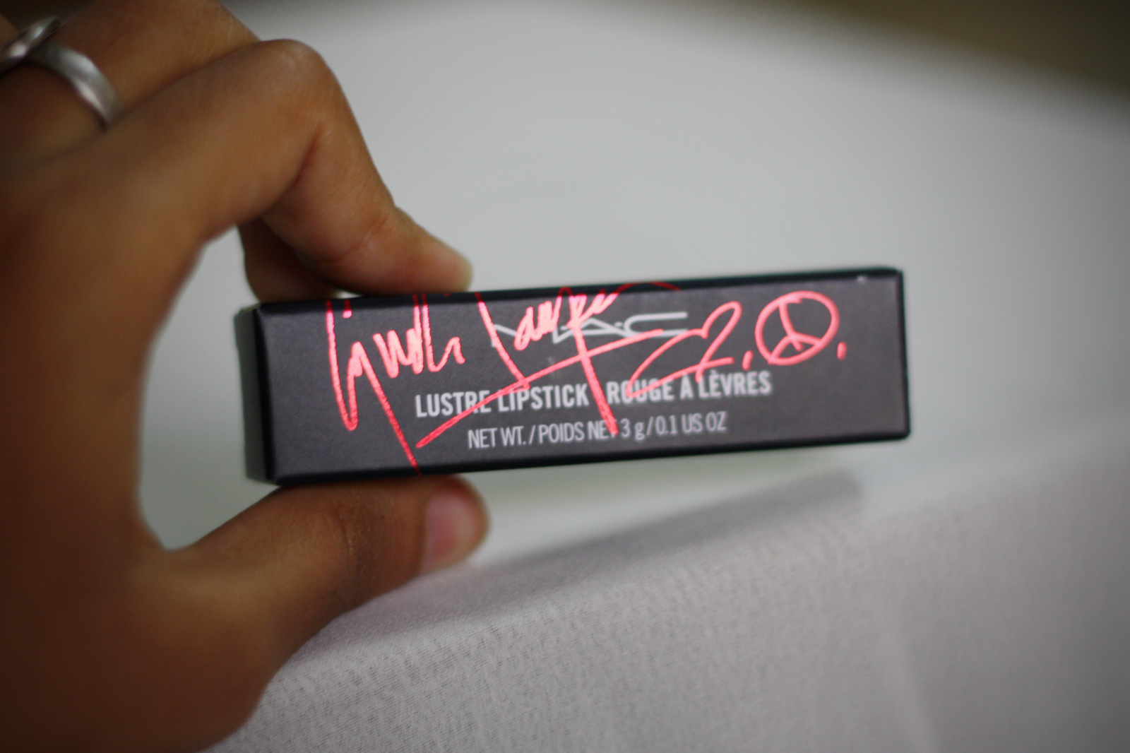 A few days after that when mom & me were shopping at a mall near home I half-heartedly wandered into the MAC area. And I looked around. Saw a the Viva Glam Gaga lipstick, but wasn’t too interested. And then I saw it. The Viva Glam Cyndi Lipstick. I was so excited I ran to mom & asked her to get it for me. It took a bit of cajoling but soon I was gleefully leaving the mall with a MAC bag.