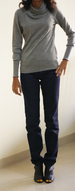 Qi Cashmere Turtleneck Sweater // Mango Suit Sleeveless Cardigan // Lee Jeans // Paprika Heels // The Bombay Store Kashmiri Suede Embroidered bag