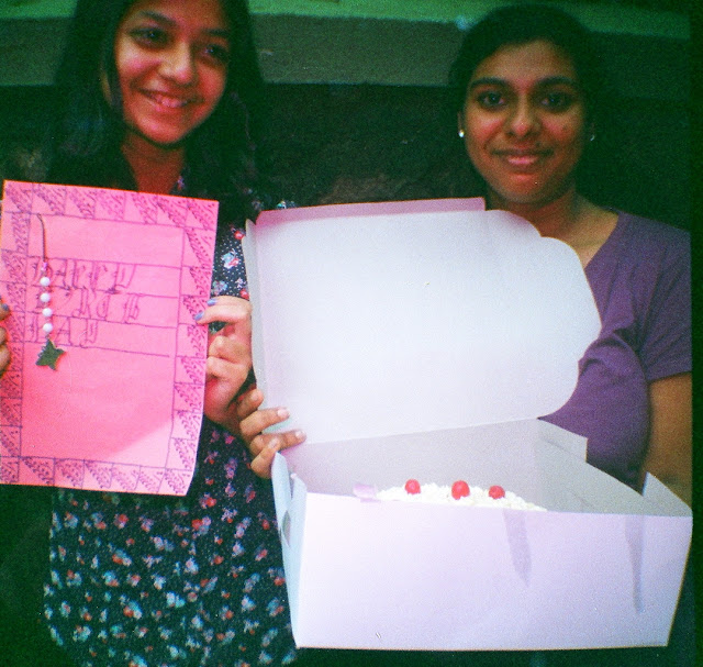 Classes ended & when we left college Mahima was at the college gate, a huge cake box & home made card in her hand.