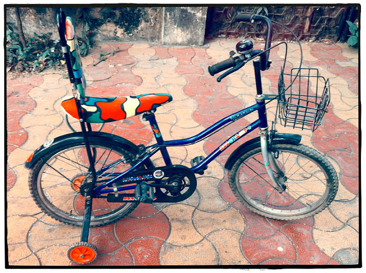 But I digress. When I was nine or ten years old (I can’t be completely sure) my parents bought me a bicycle. It was a nice BSA champ, with training wheels & a basket basically the best (maybe only) kid’s bike available then, this is before all kinds of exotic brands were being imported into the country. I remember going with my mom to pick it up from the shop. I remember him installing the bell & us excitedly taking it home. I loved the bicycle. My parents tied a lovely multicoloured plastic pinwheel to the front of it & I took it down in the garden many times. I loved it. But soon later I forgot all about it & it just lay in the balcony collecting dust.