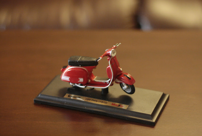 Owning a Vespa has always been a dream. And now that Vespa India is launching (or has already launched?!) it’s a little bit closer to becoming a reality. It will be a few years till I can buy one. But until then I have a mini red Vespa – a perfect model of the 2000 Vespa Rally from 1972.