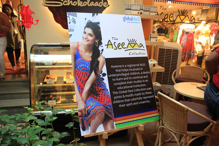 A few days earlier I was invited by global desi for the unveiling of their latest offering – The Aseema Collection. Aseema in an NGO that helps underprivileged children stay in school/college. This is Global Desi’s second initiative with the NGO and the kids. Global Desi has always supported Aseema by giving an opportunity to the budding minds of these young kids by showcasing their talent as a part of their collection through ingenious methods since last year. Aseema, the official cause partner has become an integral part of Anita Dongre’s (she’s a famous Indian designer & founder of global desi as well as AND) vision for her company and the love she has for kids.
