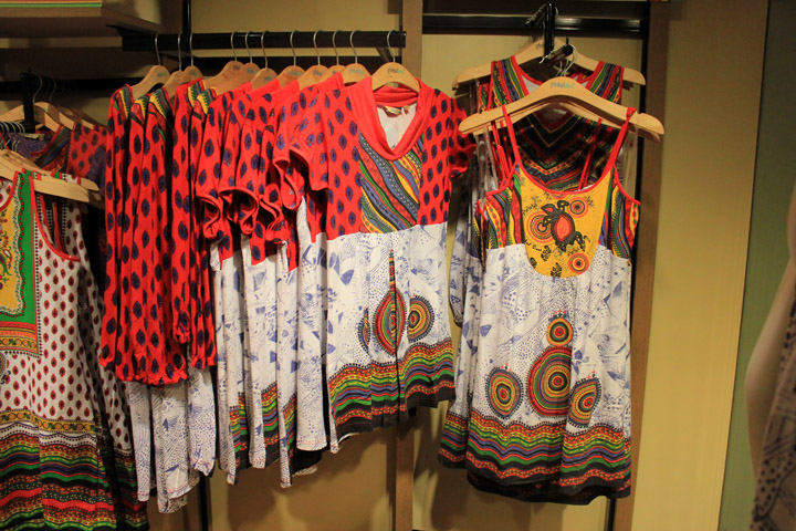 The four kids from Aseema did drawings based on the ‘Underwater’ theme. Then the people & global desi worked hard to put those motifs on their designs. Other than maybe slight color changes, the designs have been replicated very well from original drawings. It wasn’t easy to do, but the kids were so proud to see their work. The clothes were otherwise designed with simple silhouettes so the drawings have the main focus.