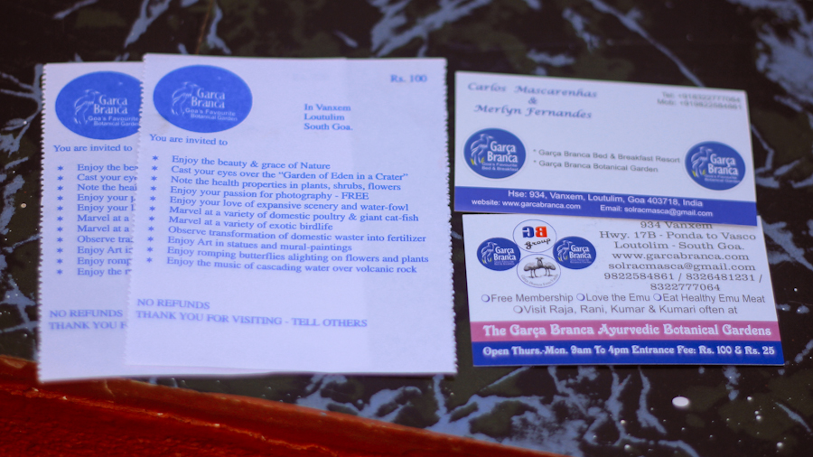 When I was in Goa last May I noticed a sign for Garça Branca Botanical Garden on a large maroon two-storey Portuguese style villa (two storey is notable because most Goan houses are just one storey) . It was interesting to see something like that in my sleepy little village – this is not the place you see tourists passing at all. I made a mental note to visit but then plum forgot about it. The next time I saw that sign we were on our way to the bus stop to return home.