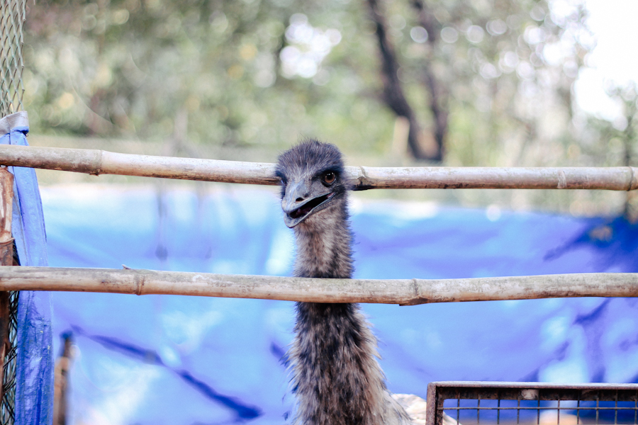 One of the four emus. If you read the above tickets & business cards, you’ll know that Garça Branca sells emu meat too. I remember first reading about emu meat when a restaurant in Mumbai introduced it last year. It has 2% fat and low cholesterol in their meat – so Carlos Mascarenhas, the man behind Garça Branca has started a crusade he calls ‘EMU MEAT FOR THE HEART ‘. He’s determined to make Goa aware of this nutritious meat and to choose it over the beef (42%), Pork (29%), Mutton (27%), Chicken (17%), Turkey (14%).
