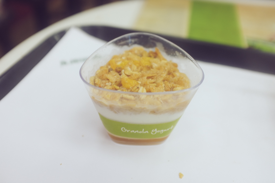 Finished up with a granola yoghurt. Although the yoghurt itself had the perfect consistency (with honey at the bottom, yum!) the granola on top was quite a disappointment. It was completely soggy & reminded me of times I took too long to eat corn flakes when I was a kid & they turned wet & soggy. It would have been so much better if the granola was added just then.
