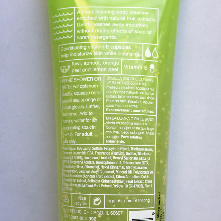 What they say: A luscious, water-rich moisture balm. Softens and nourishes skin with natural fruit extracts. Combined with emollient shea butter and aloe vera. Remarkably soothes and comforts skin. Stimulates your senses with this twist of juicy kiwi and warm cassis. Formulated with natural fruit extracts. Gently washes away impurities without drying effects of soap or detergent.