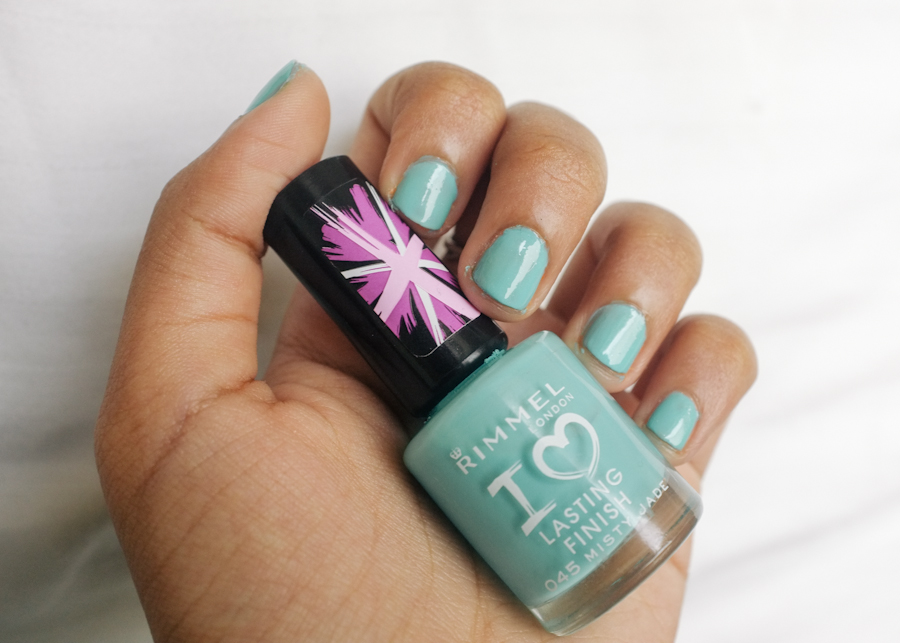 That’s when I found this beauty by Rimmel. I’m not sure how you can describe this shade. It’s much deeper than mint, a sort of teal / turquoise. Here I’ve swatches it with the Rimmel Stronger Double Duty Base Coat. I was out of top coat at that time so I just used to base coat as one. It may not be too shiny but it does the trick!