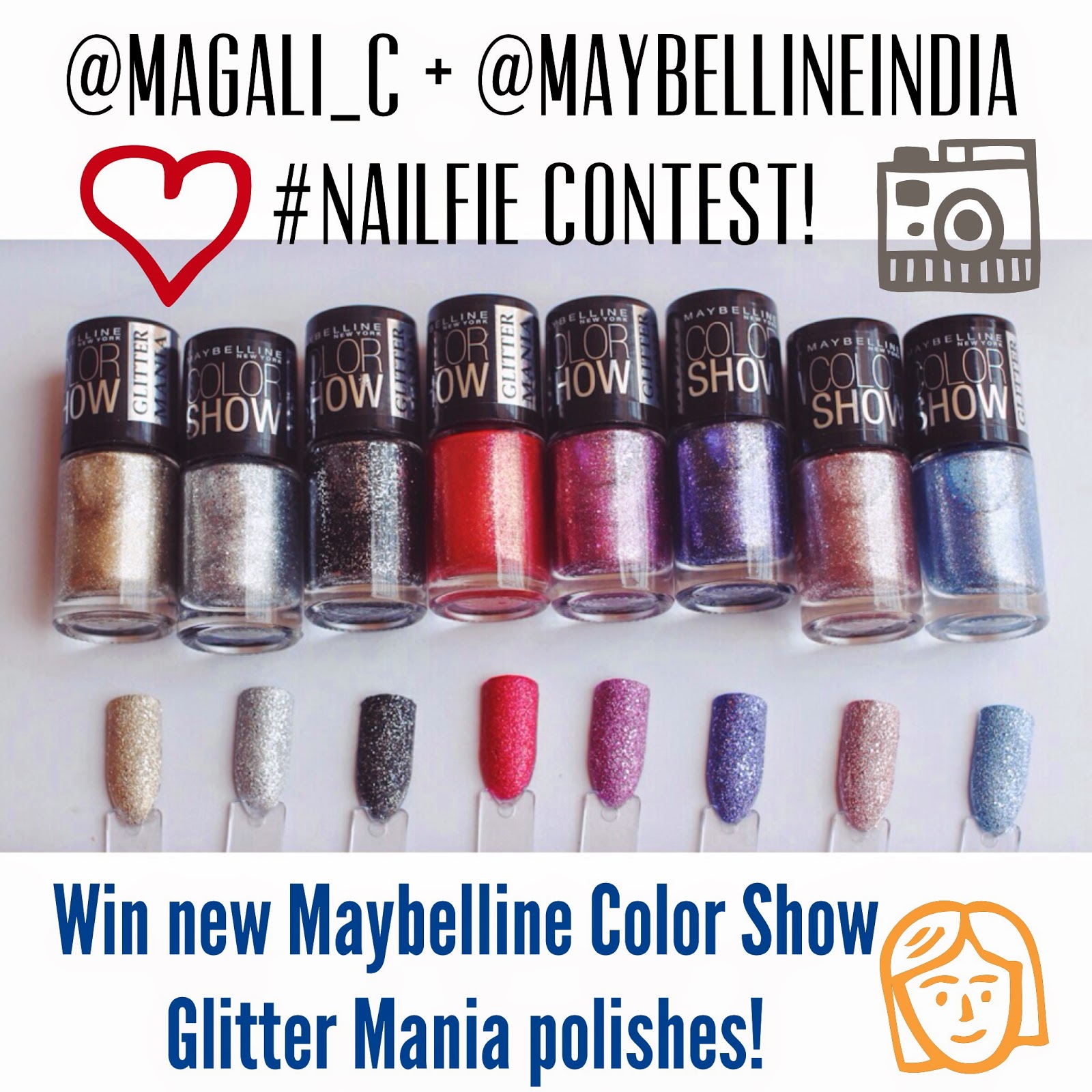 And that’s not all, there’s a Giveaway! Maybelline has very kindly offered to give you guys hampers with their new Glitter Mania polishes! All you have to do is click a #Nailfie. Confused? All the details are here: @magali_c + @maybellineindia #nailfie contest!