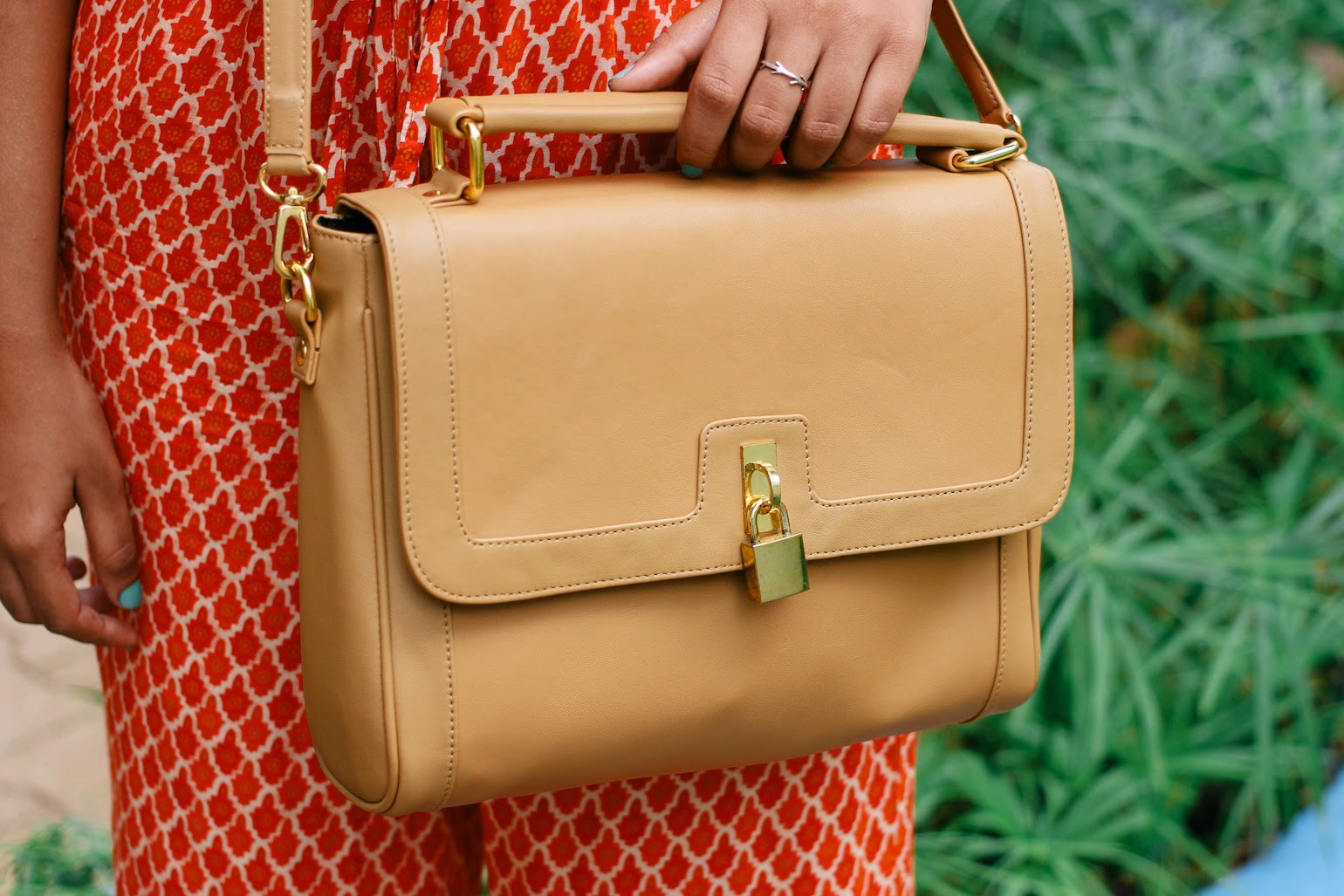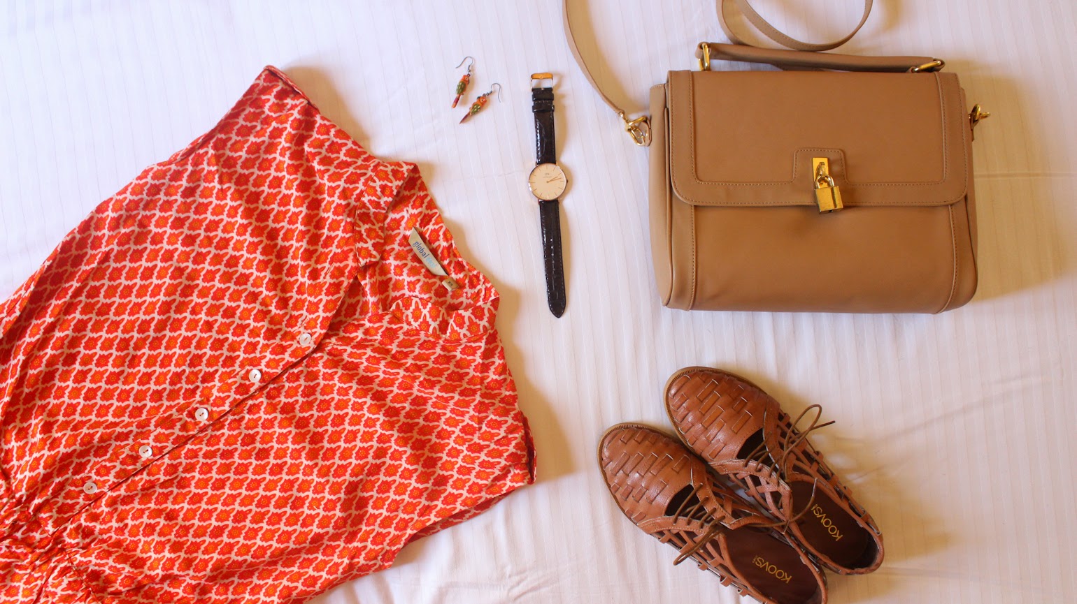 Global Desi Jumpsuit // Daniel Wellington Classic York Lady* // etsy earrings // The Trunk Label Tessa Bag* // Koovs Lattice Woven lace up