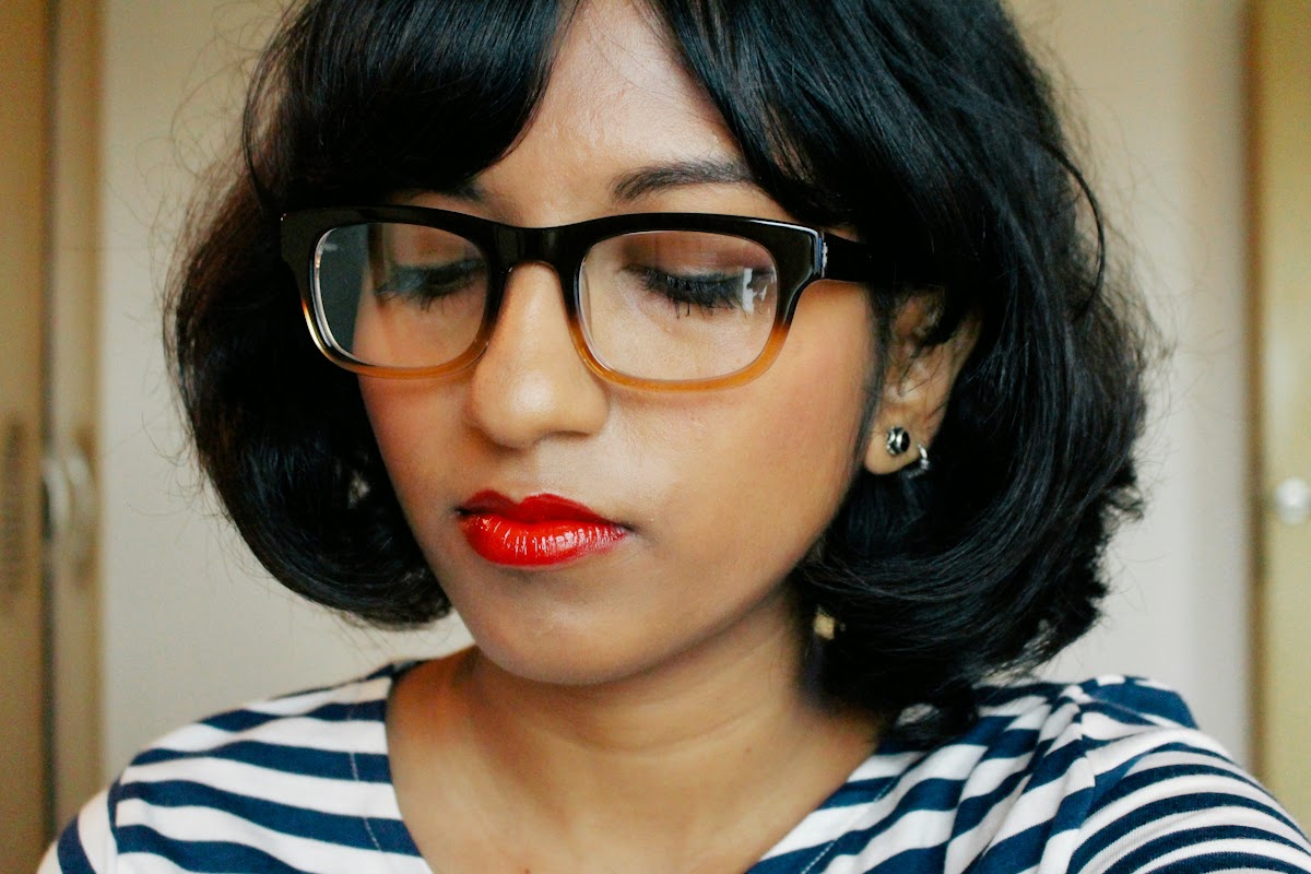 I was very excited to pick out my four pairs! They come in this cute book shaped cardboard box, which comes in an additional box. Inside, all four frames come in velvet drawstring pouches. I loved the attention to detail, I guess the folks at Happster are big fans of the Beatles. Now, time to try them on!on my face: Rimmel Scandaleyes Shadow Stick in Bad Girl Bronze