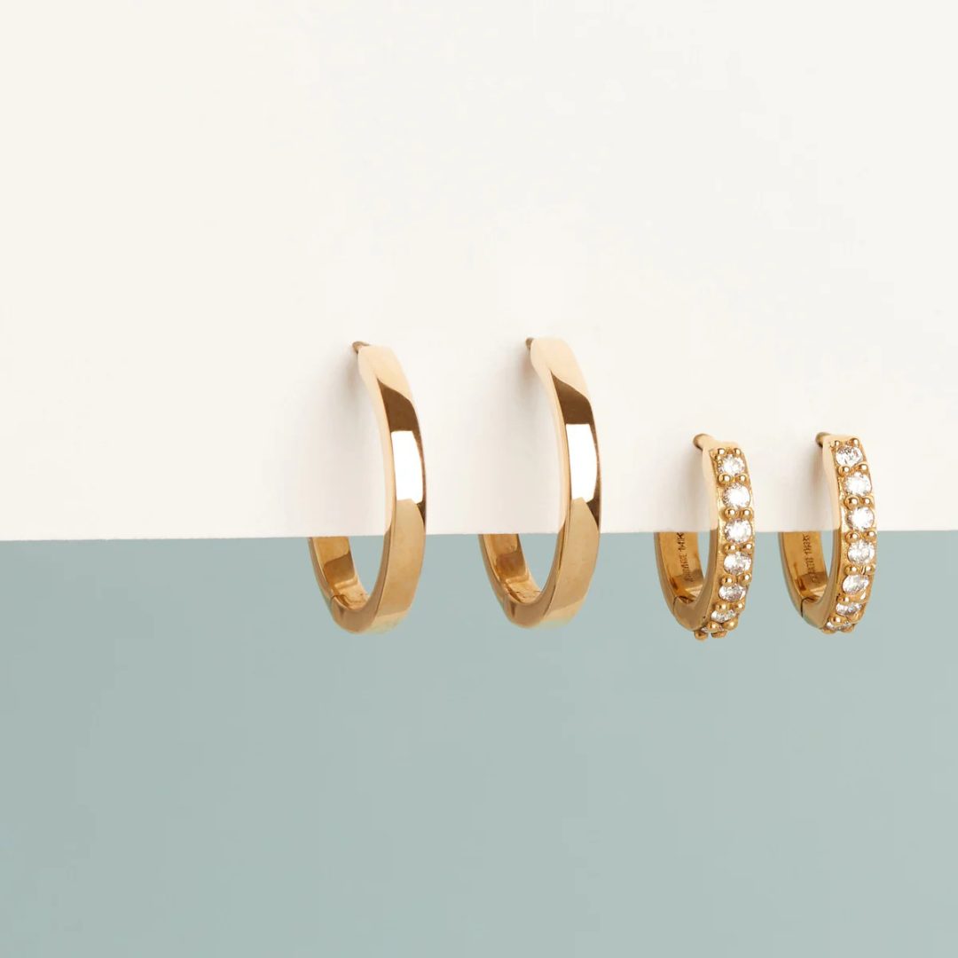 I love accessorising, but I’m not the biggest fan of switching up my earrings very often. Enter: dainty gold huggie earrings. I especially like hinged huggies in 14k gold because I can pop them in & forget about them for years. I wear my small 10mm huggies in my second piercing 24x7x365, yes they’re fine for showers, workouts or the beach. They compliment larger statement earrings or look great on their own, too. They’re a solid investment that you can wear for years & even pass down later.