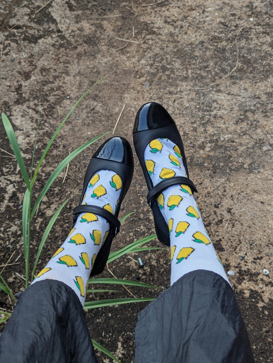 Mary Jane shoes are back, but the question is, did they ever really leave? I love seeing all the hybrids like mary jane sneakers, mary jane crocs & even mary jane uggs (no, I’m not making any of that up!) So of course I had to snag a pair, & I kept it very classic with these Clarks school shoes. I really enjoy the two toned leather (matte with a shiny patent toe area) & I find that they’re the perfect blank canvas to accessorize with really fun printed socks!